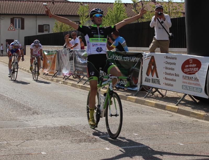 4e, 3e, 2e…. la victoire se rapproche pour Tristan Horreaux en ce mois de juillet. Cela n’est pas passé loin à St Denis Les Bourg en région Rhône Alpes. Sous une grosse chaleur, 75 concurrents se lancent sur les 102 km d’un circuit usant. Après un début de course rapide où les attaques fusent, une dizaine d’hommes, dont Damien Boston et Rémi Giroud du Chambéry Cyclisme Compétition, prennent le large et comptent une petite minute d’avance au 40e km. Peu après la mi-course, un contre se forme avec Tristan et opère la jonction sous l’impulsion des coureurs du club organisateur, le Bourg en Bresse Ain Cyclisme. 20 hommes se retrouvent en tête, mais après une accélération violente de Damien Boston, ils ne sont plus que 10 à pouvoir se jouer la victoire. Dans les derniers km, Tristan tente de s’échapper avec Damien Boston, mais ils sont repris en vue de l’arrivée. A la flamme rouge, Charles Thomasset (Bourg en Bresse Ain Cyclisme) anticipe le sprint et s’en va l’emporter en gardant une belle longueur d’avance sur Tristan qui règle le groupe.
