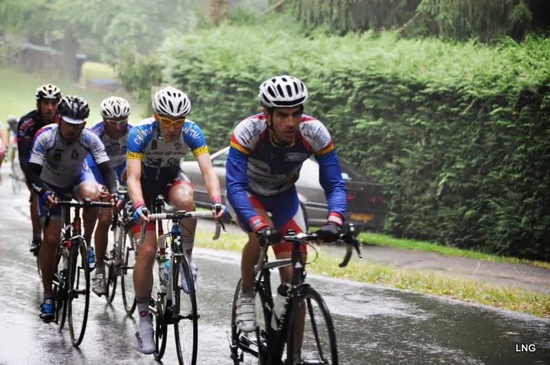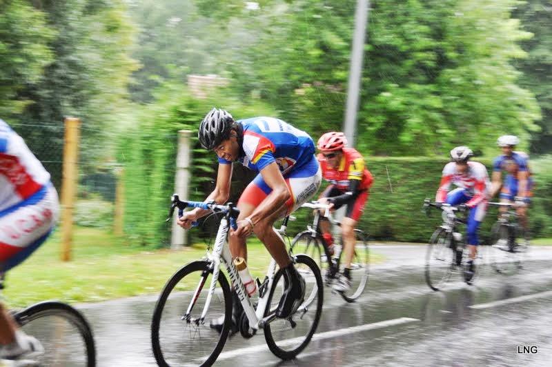 En ce dimanche 25 août frais et pluvieux, un peloton de 65 coureurs s’élance pour la course de Villeneuve sur Bellot en série départementale 1. Six tours de 13Km avec une côte très difficile de 2km (dont le 1er à 8%) placée en début de circuit.